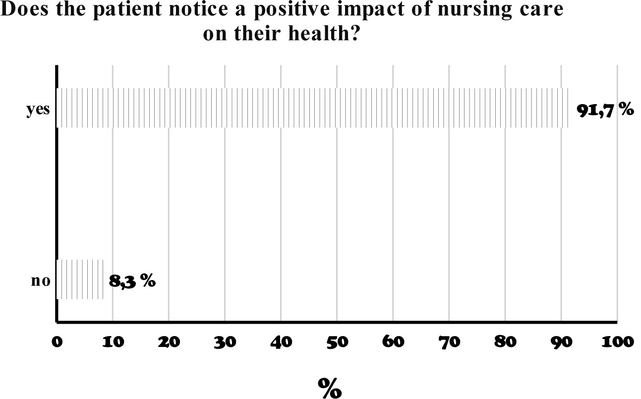 Almost all of the patients (91,7%) reported a positive impact of nursing care on their health, while only 8,3% of patients did not notice such an effect.