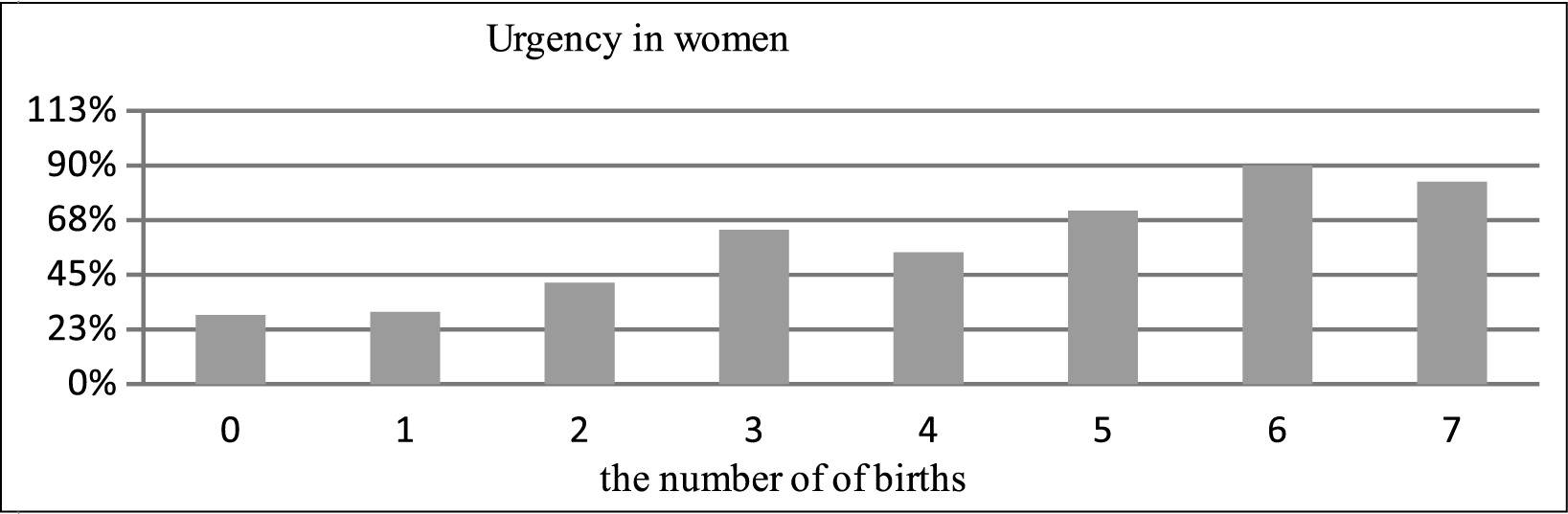 Our own results conducted among women in rural and urban settings confirmed that the number of deliveries significantly affects the incidence of urgent pushing among the surveyed respondents. 30% of women who had given birth only once admitted to this episode, over 60% were women after three deliveries, 70% after five deliveries, while up to 90% of women after six deliveries admitted to the occurrence of urgency. A similar relationship emerges with the onset of uncontrolled urinary leakage.