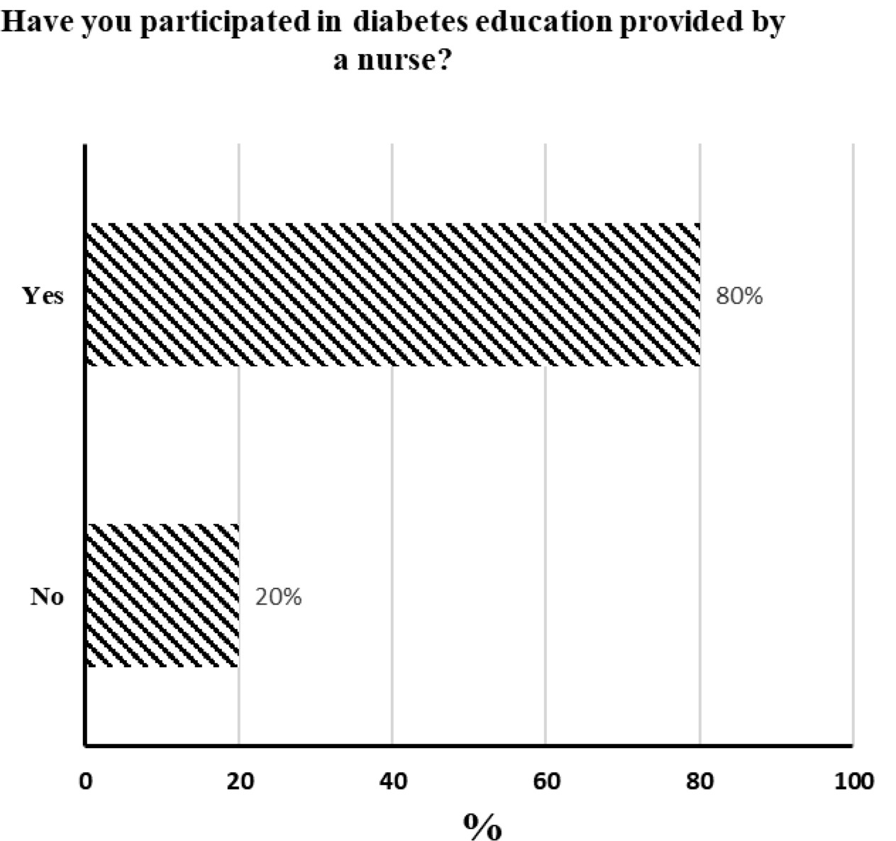 Figure 10 shows the distribution of responses to question no. 9 “Have you participated in diabetes education provided by a nurse?” Forty respondents (80%) confirmed participation in nurse-led diabetes education, while 10 participants (20%) reported no such involvement.